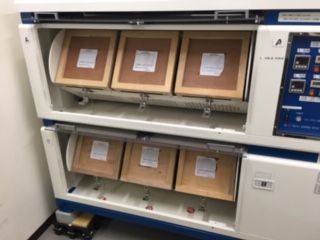 試料を45Nで荷重した試験機を37℃の乾燥機中に4時間入れます。