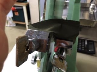 セット・押さえを外すとおもりが振れて一気に試験片を引き裂きます。