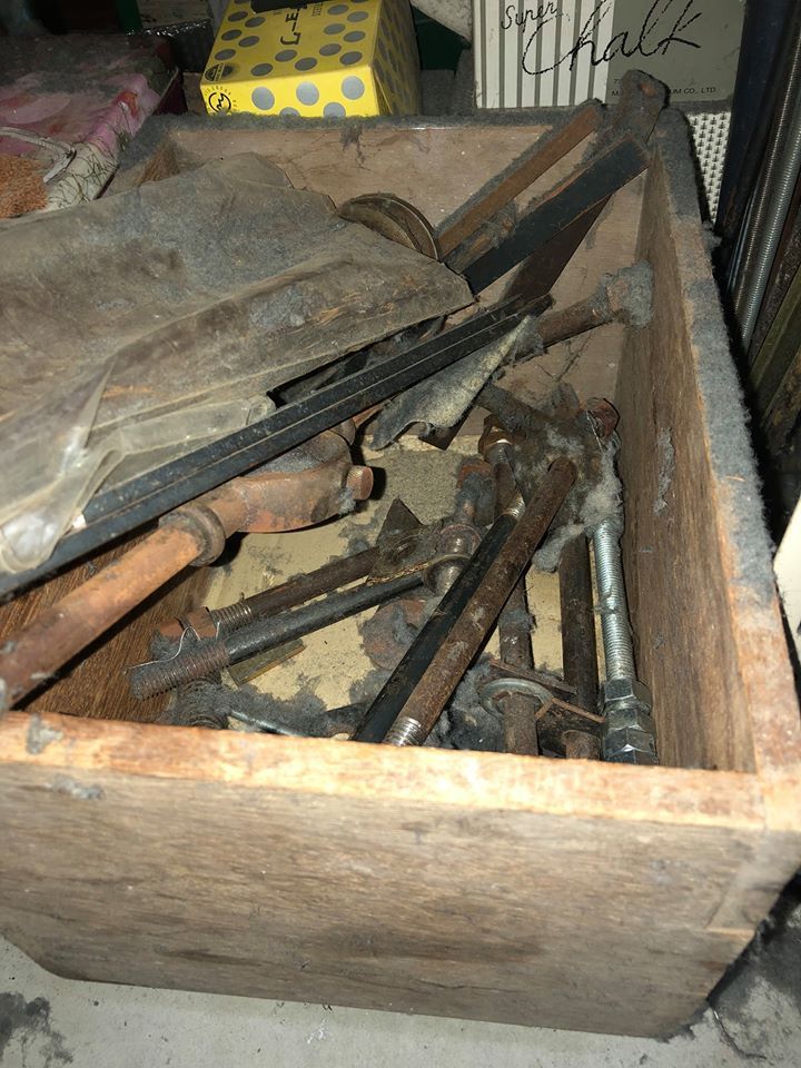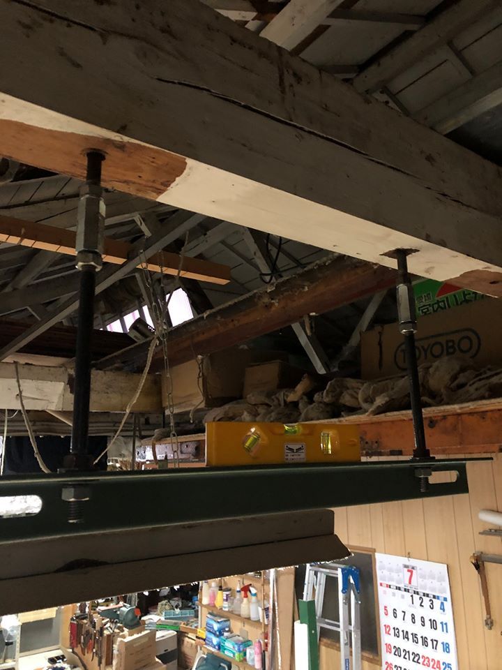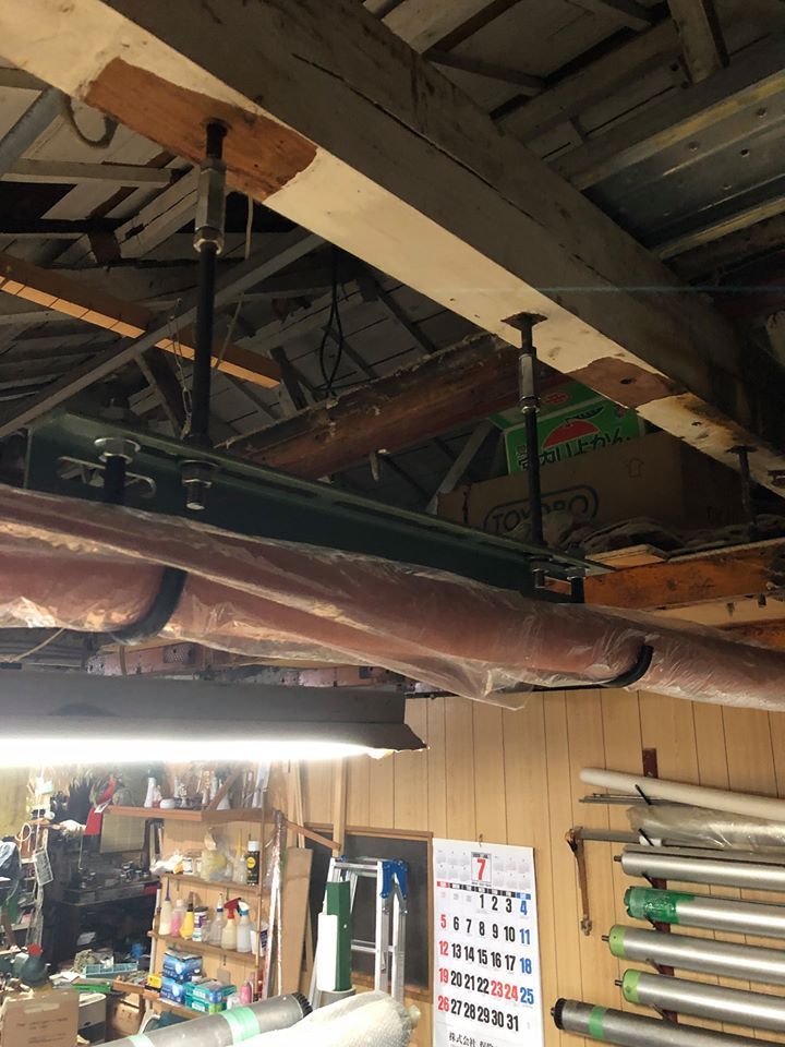 先代の頃のシャトル織機の連動シャフト軸受けの名残の