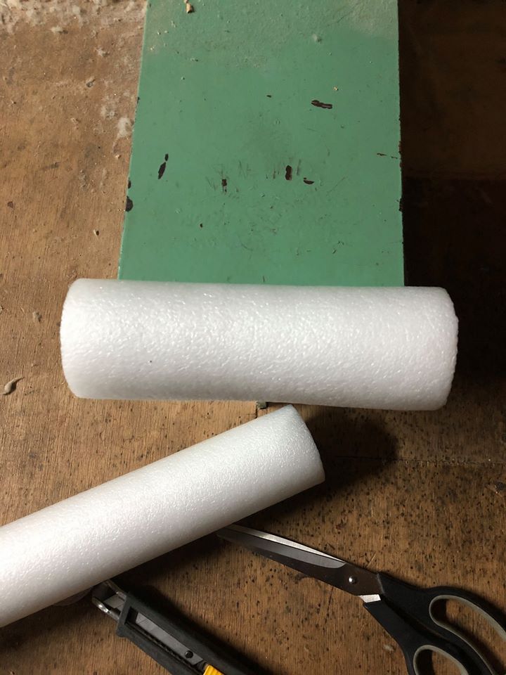 OKD御用達の保護材(一般的には塩ビパイプ用保温材?)を用いて