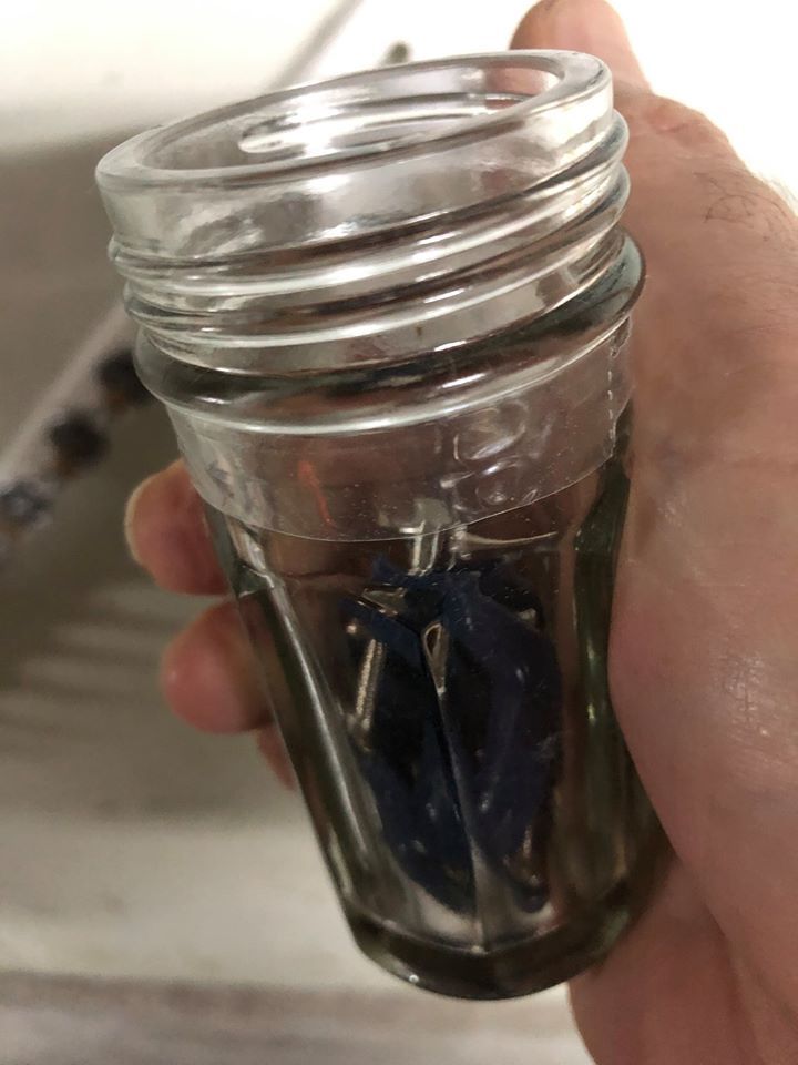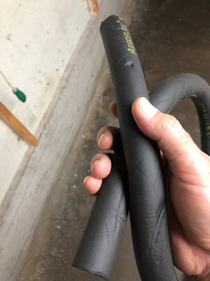 アキュームレータの中のチューブ交換した時の端材をリサイクルしている