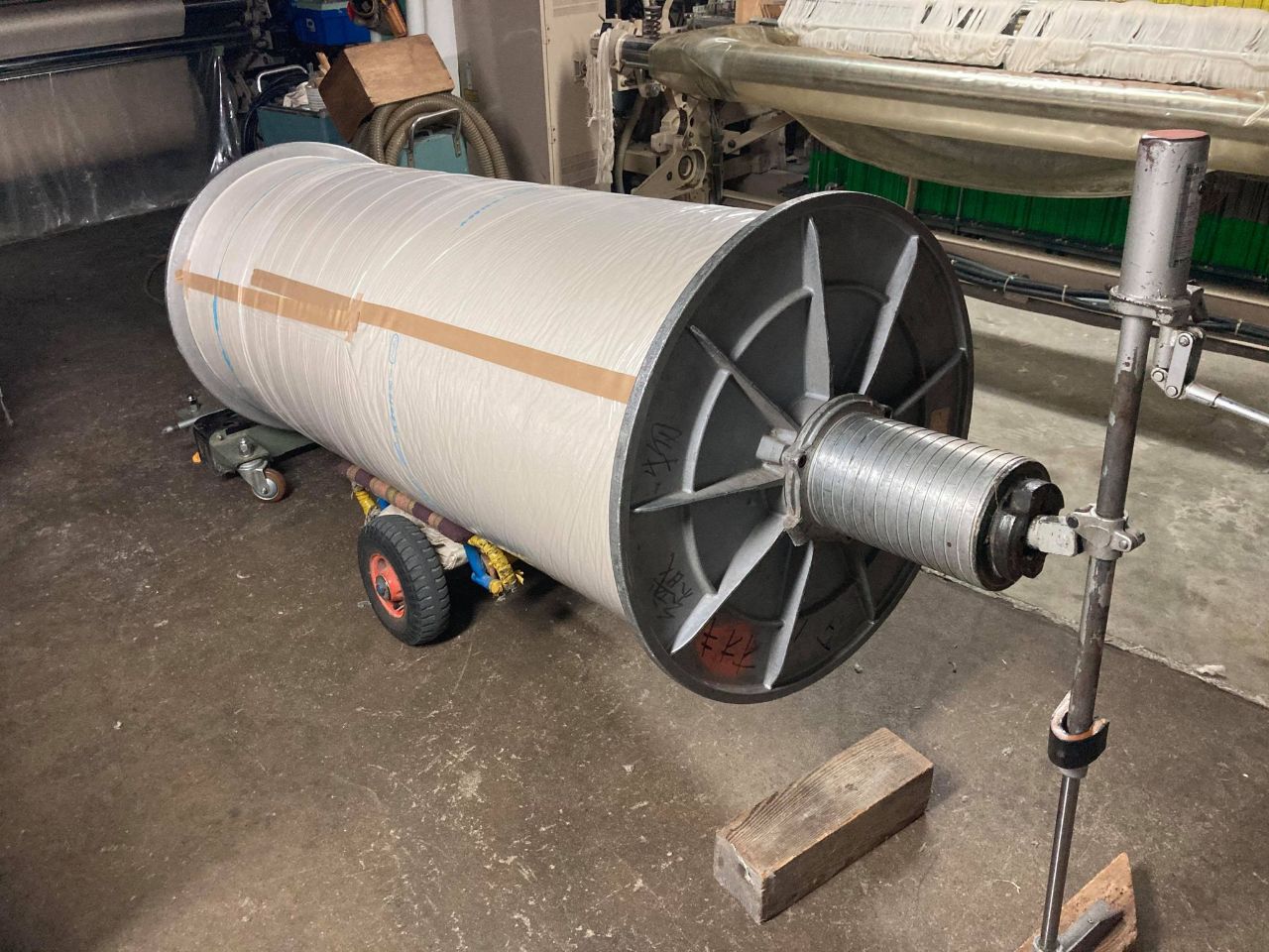 ≒500㎏の巻きを二輪車(巻き車)に乗せ