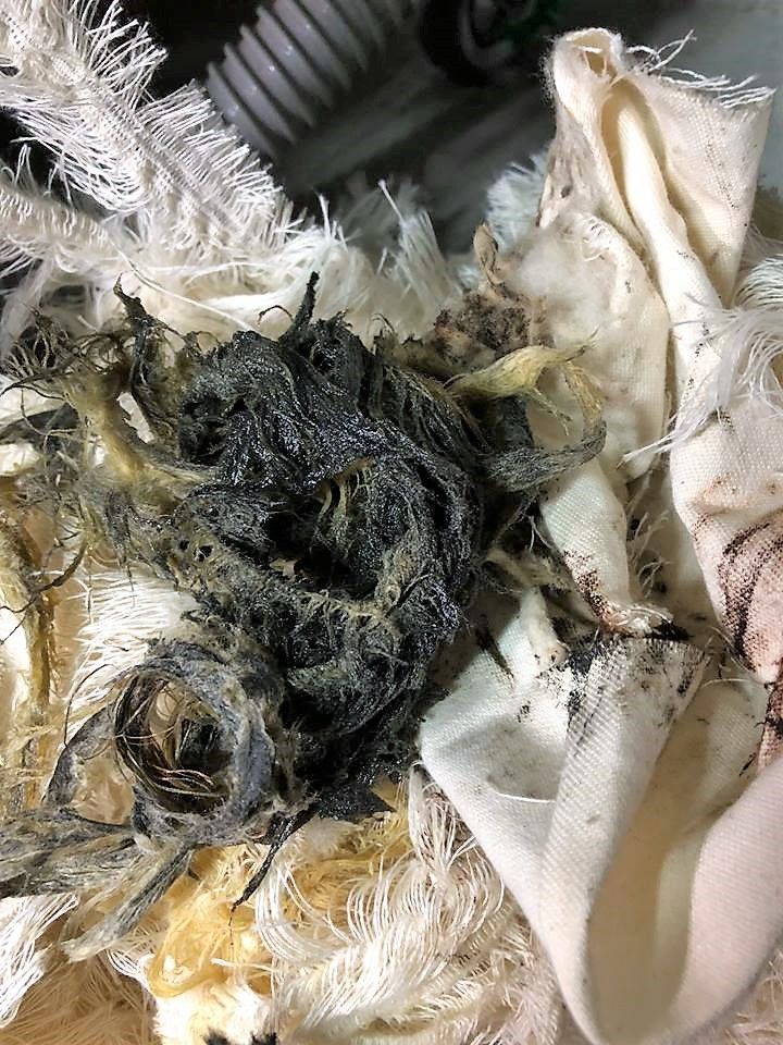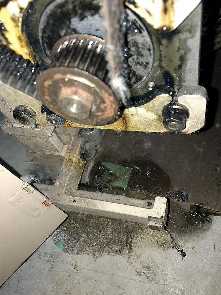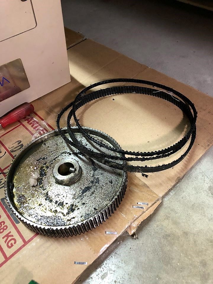 ベルトもオイルが染み、タテに3つに分断され