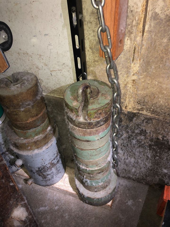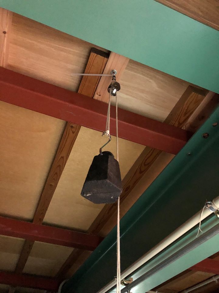ステンレス滑車の先にオモリを付けてテンションをかける