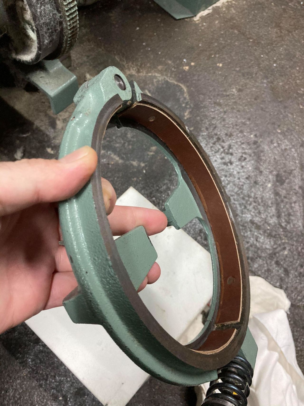(対面の皮ブレーキが剥がれてこびり付いている)