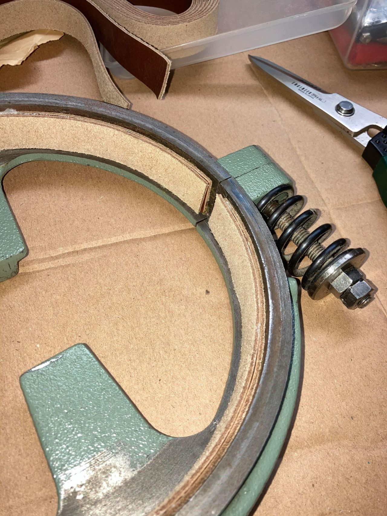 この皮ブレーキ材も純正ではなく