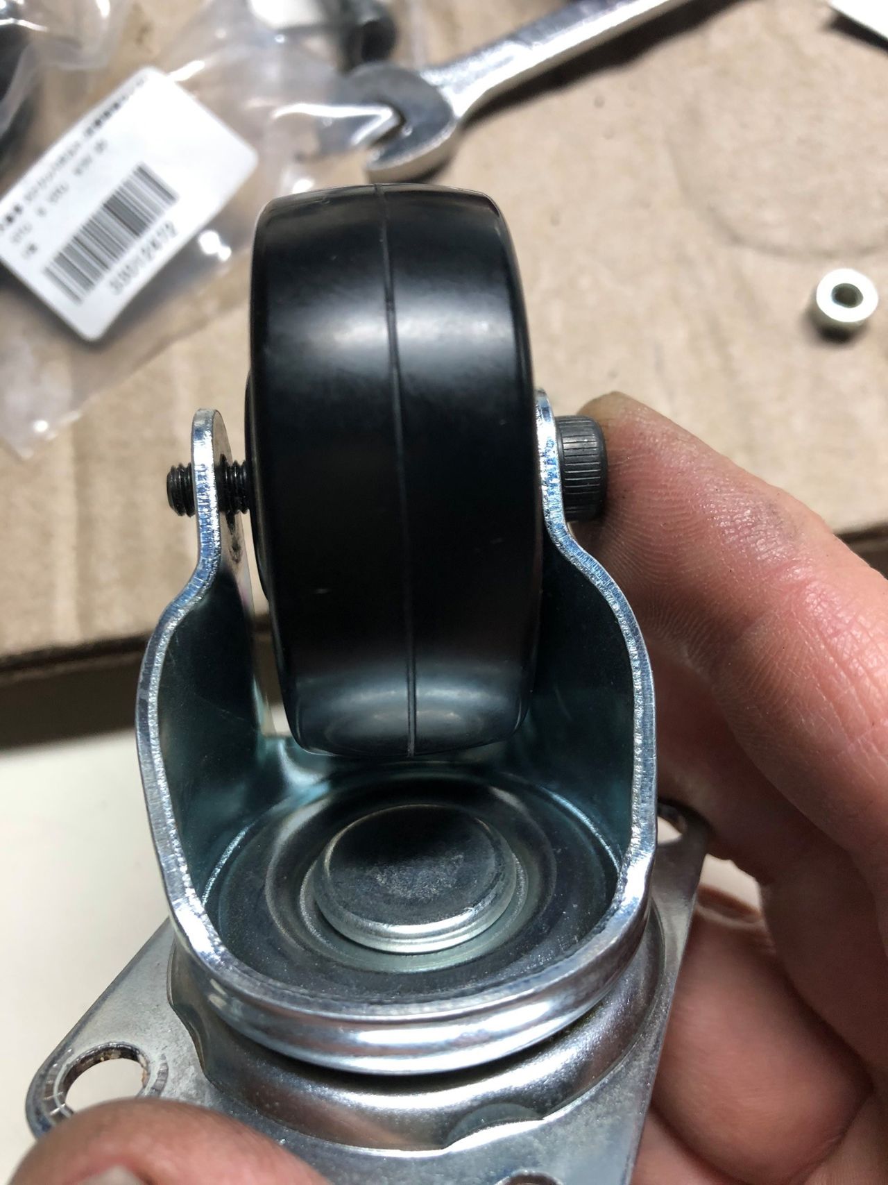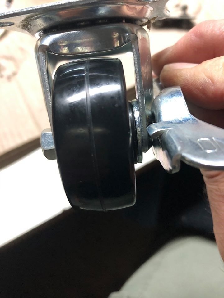 次は、ストッパー無しのキャスターの交換修理に・・・