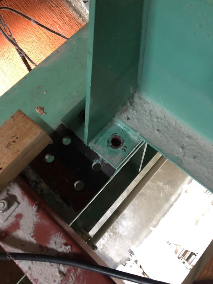 新台用に枕梁を移動させ、固定用の穴を開ける