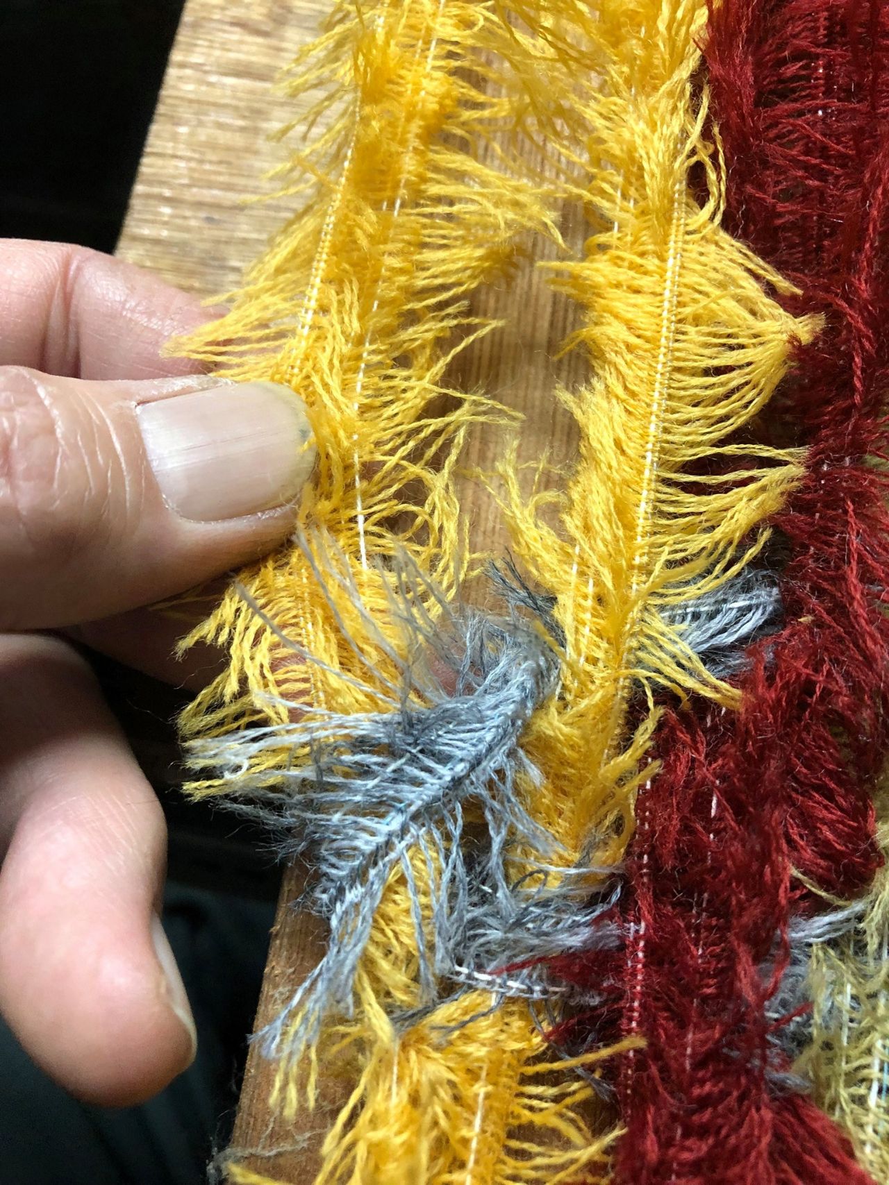 ヨコ糸をタテ糸交互(平畦)に挿入していく