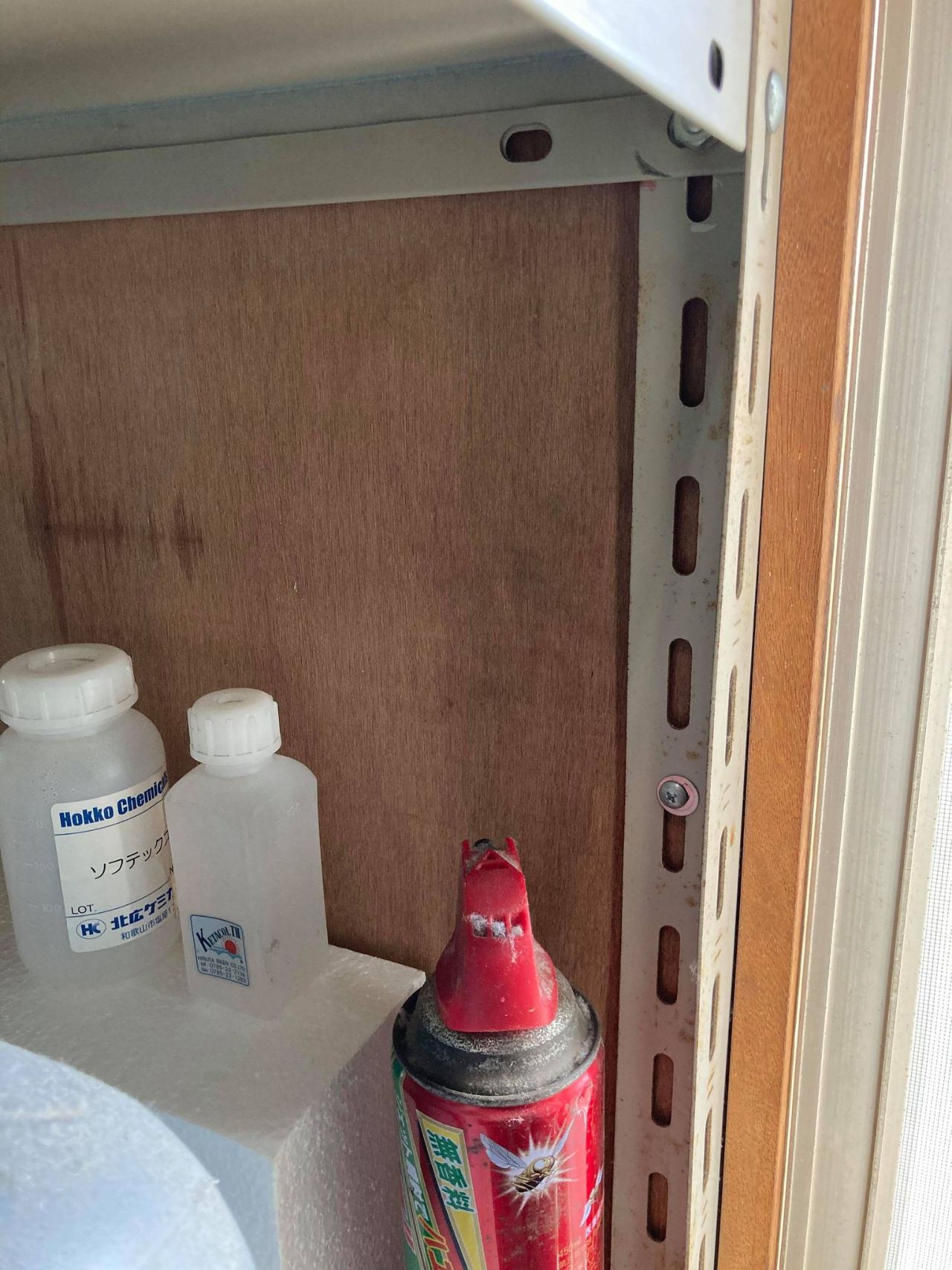 このラック、所々コンパネ壁にネジ止めしてるので