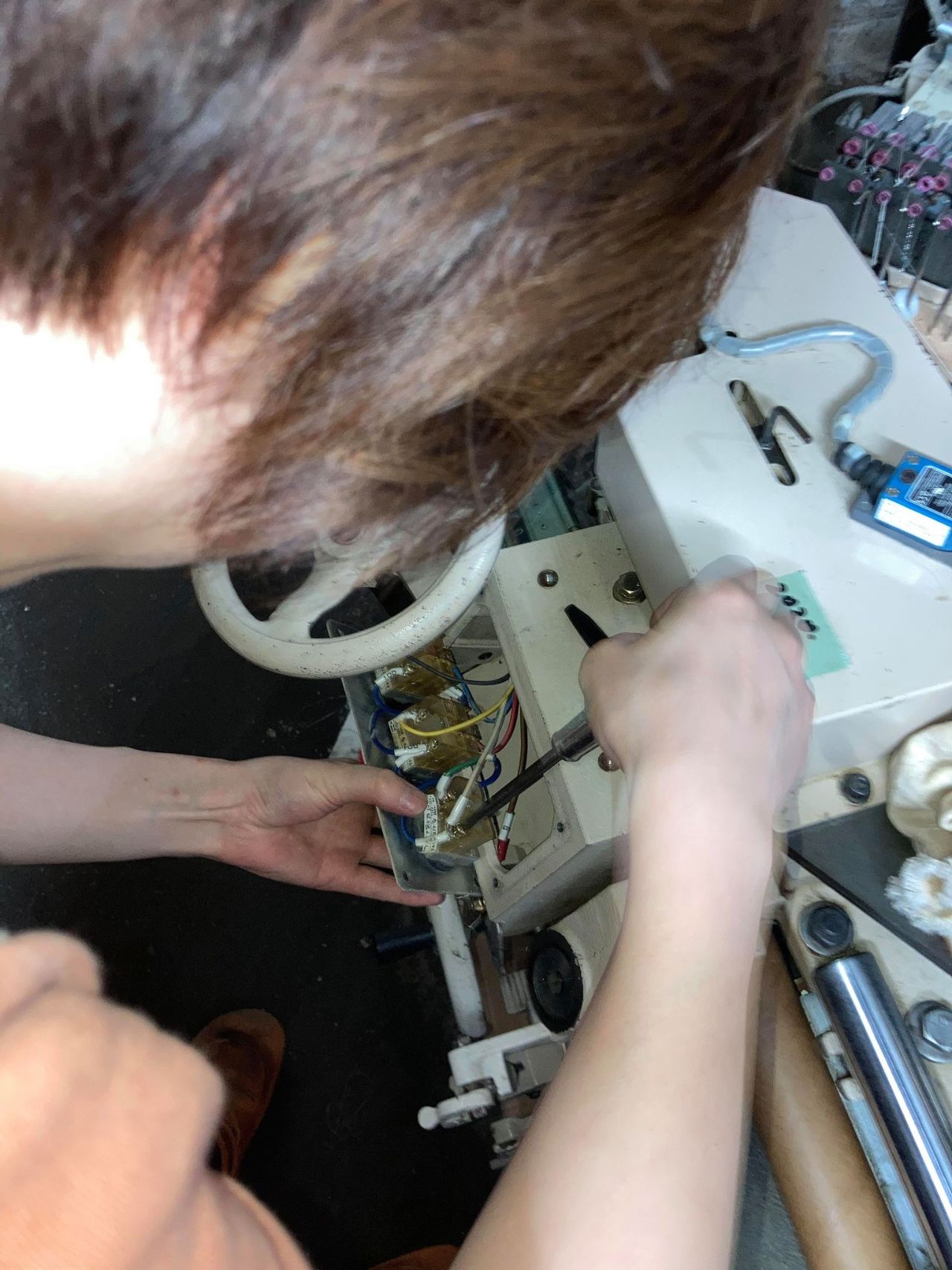 先ずは、織機の操作パネルを開ける