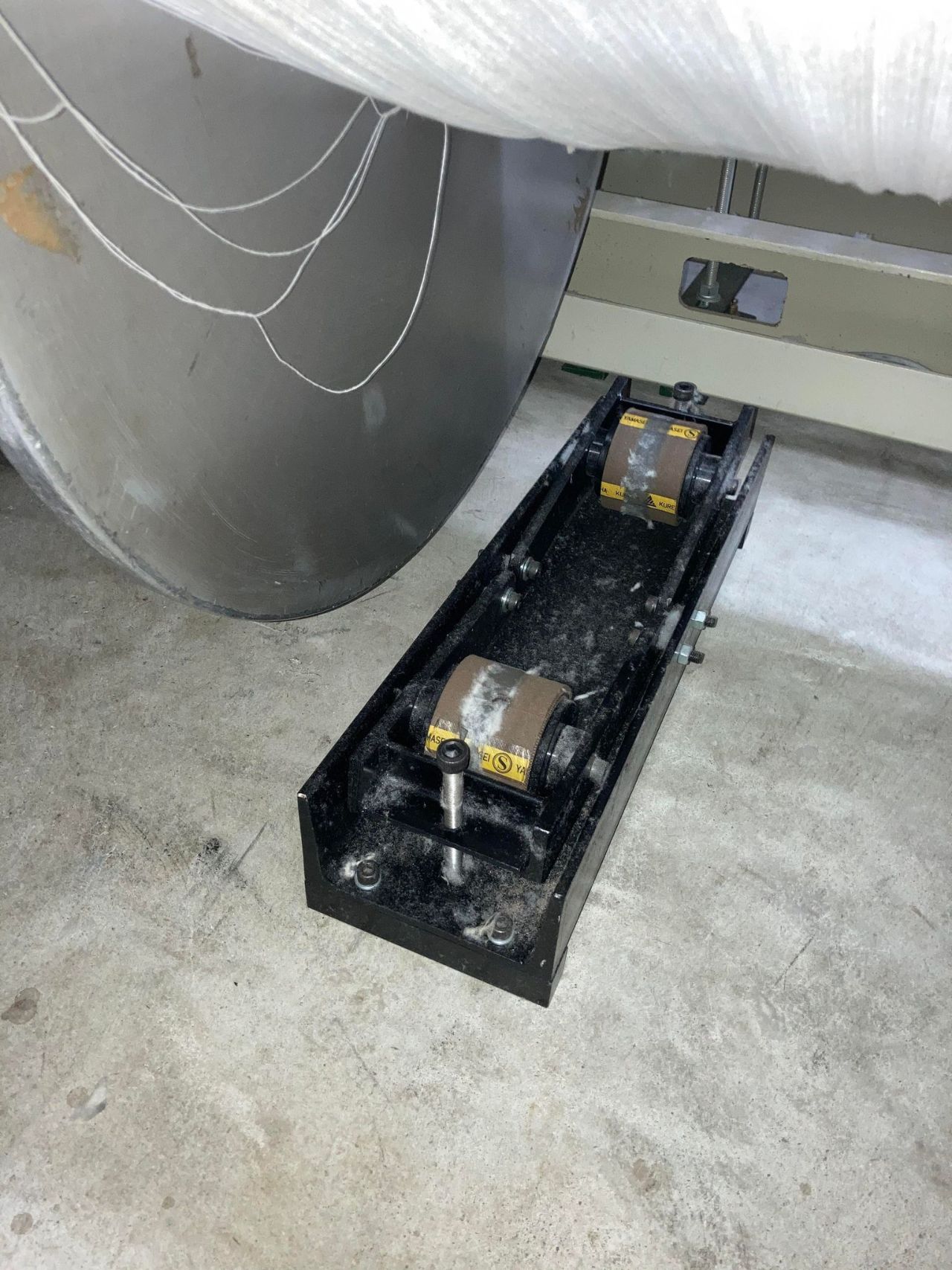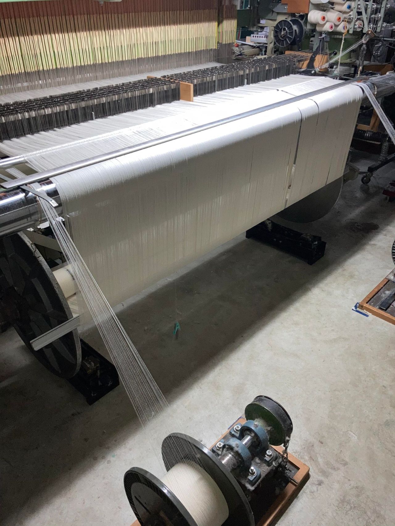 今回は、織り終わった中ロットの巻きを外して次に備える