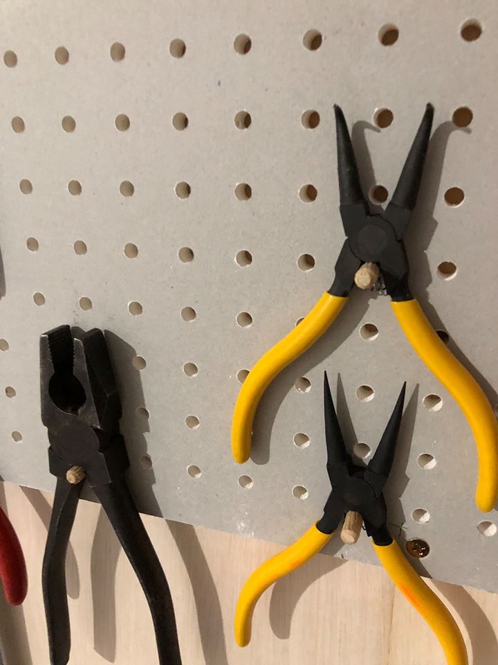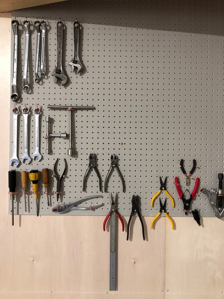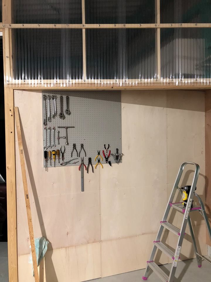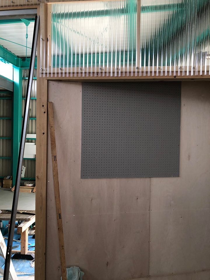 OKD式ツールハンガーを創る為に、工場壁に穴あきボードを取付け