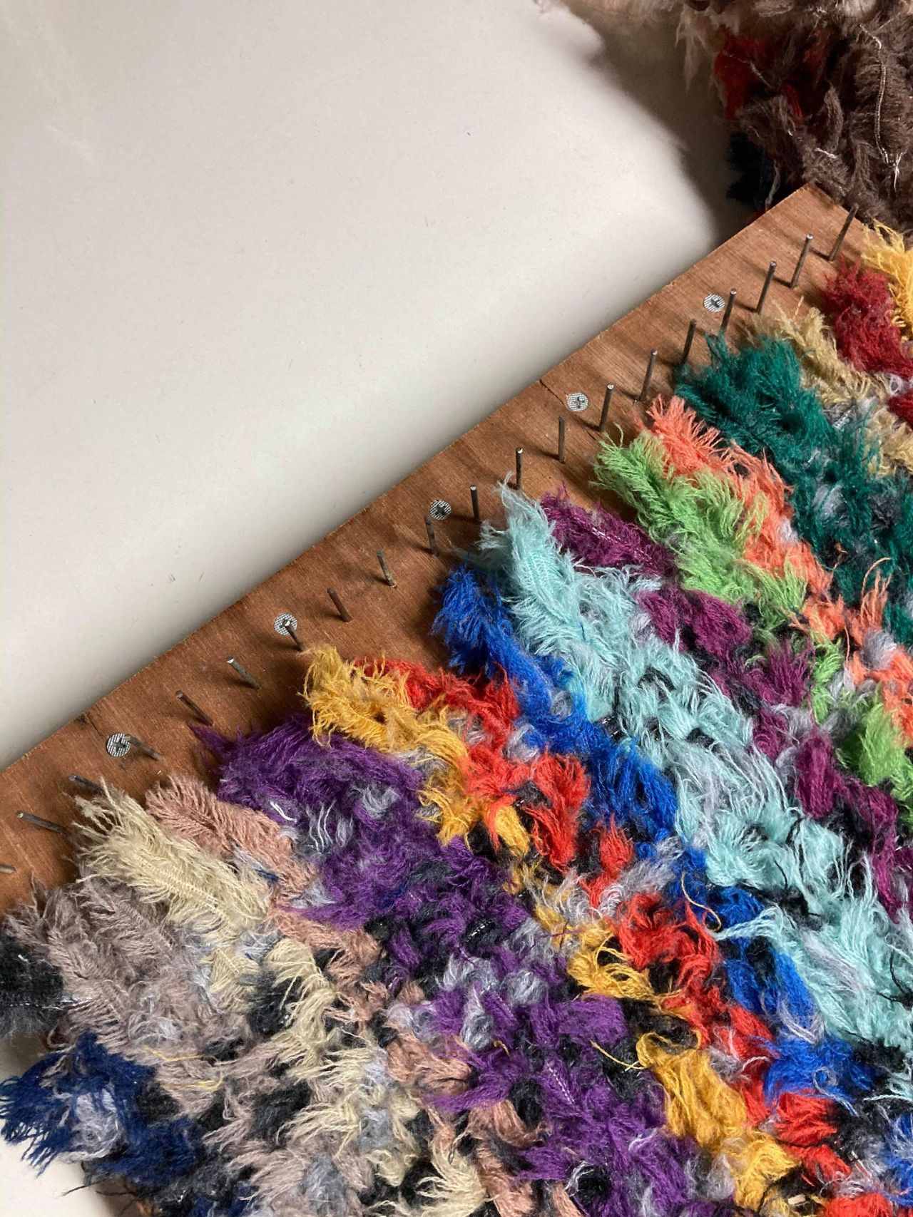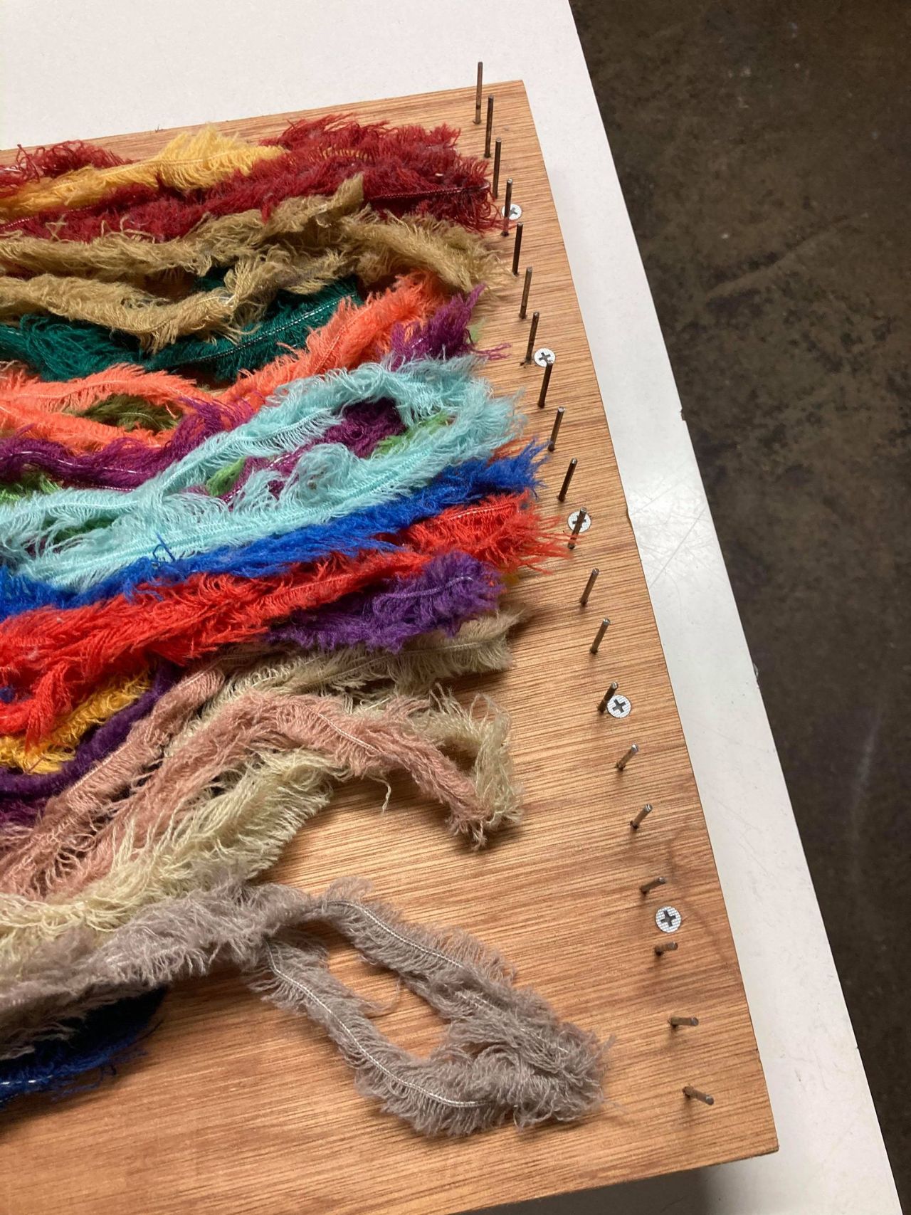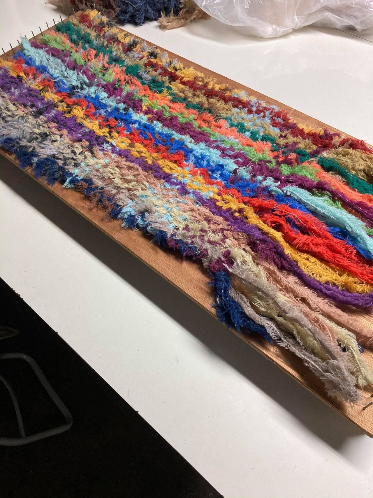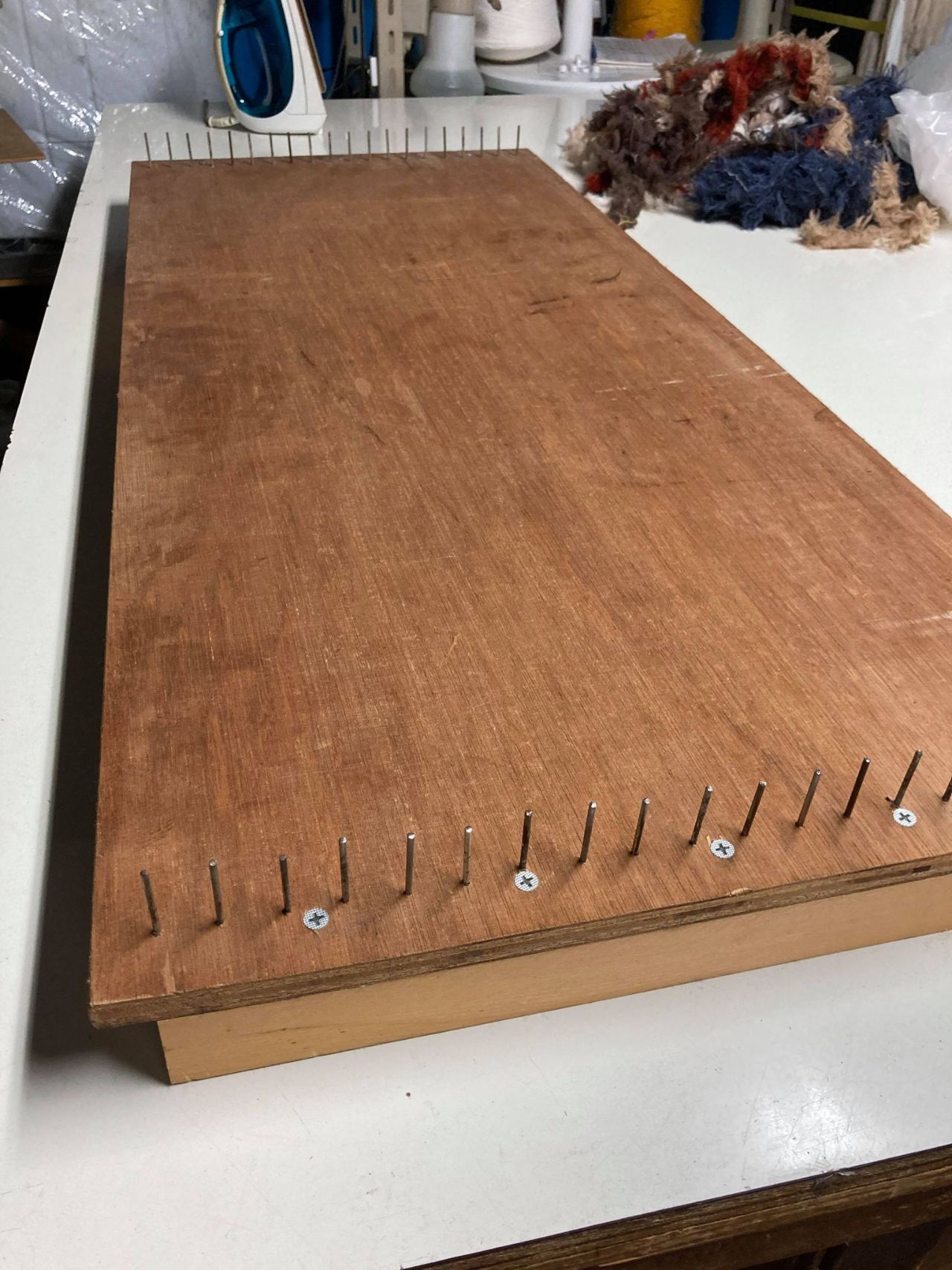 OKD式・平面手織り機のフックに引っ掛けてた房耳を外し