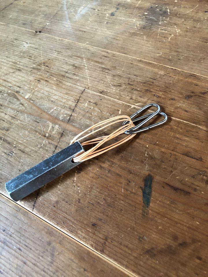 ジャガードの吊り込みで使われる通じ糸(ダクロン)を通して