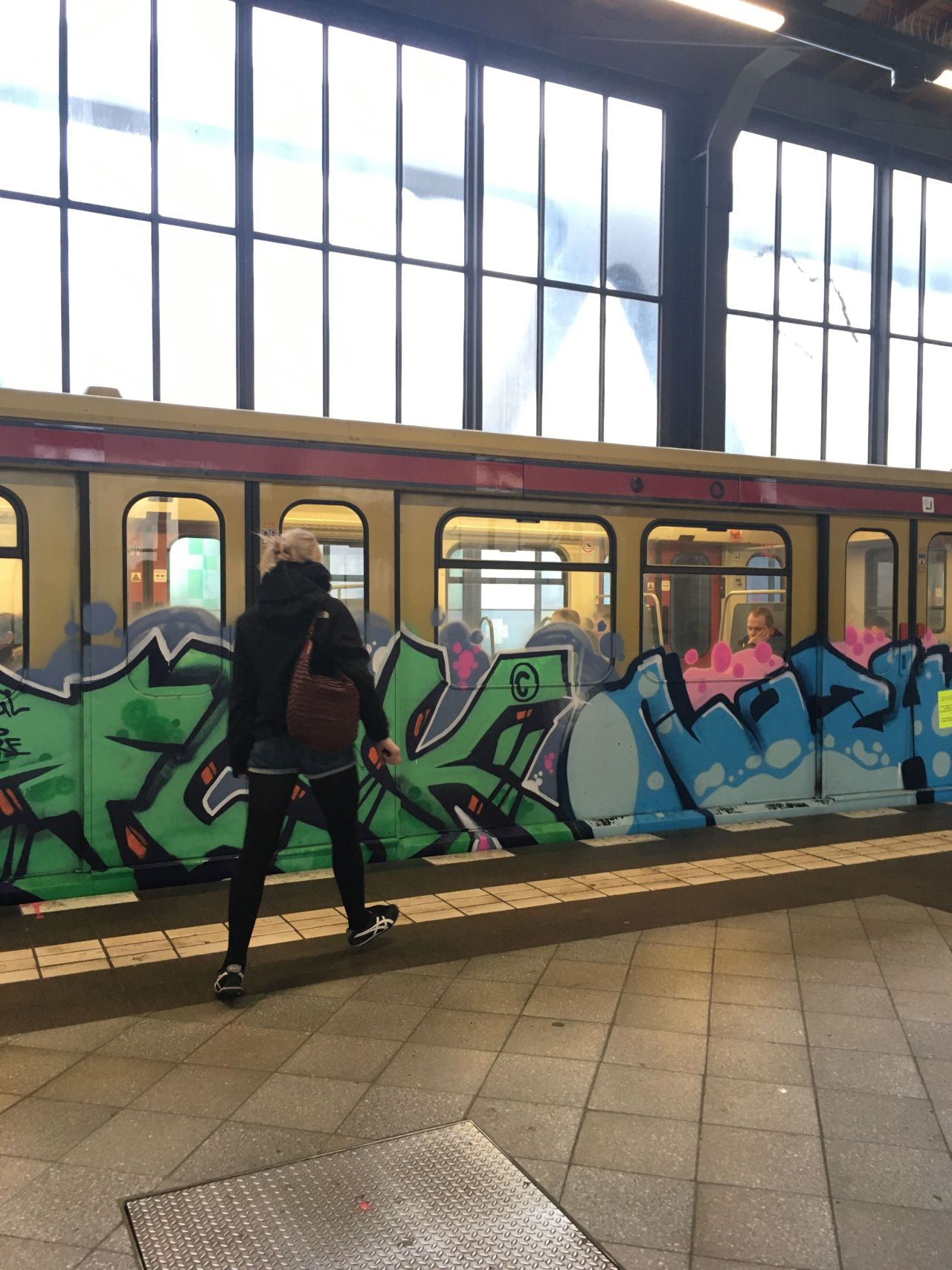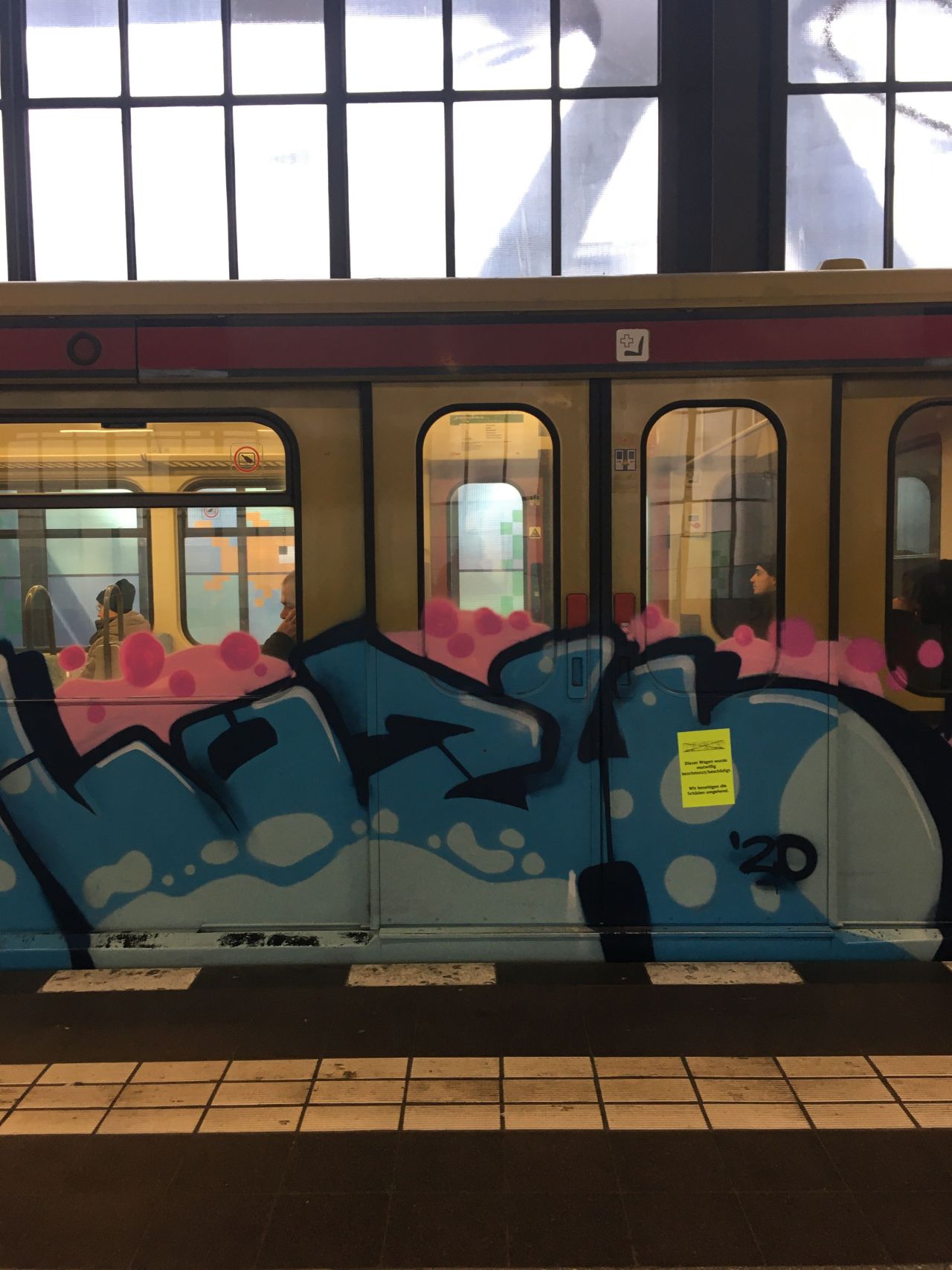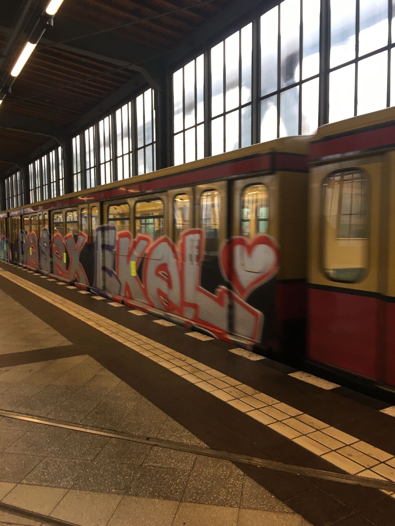 電車待ちをしていたらかきたてほやほやのグラフィティー電車に遭遇しました。