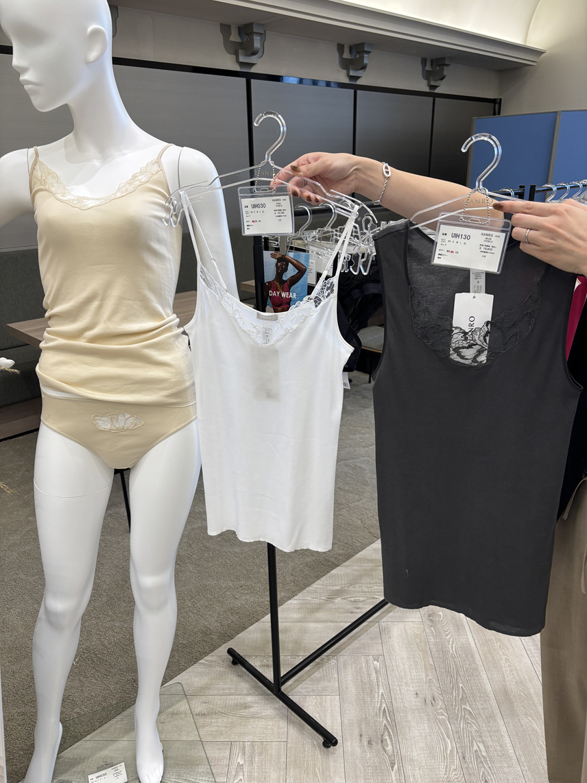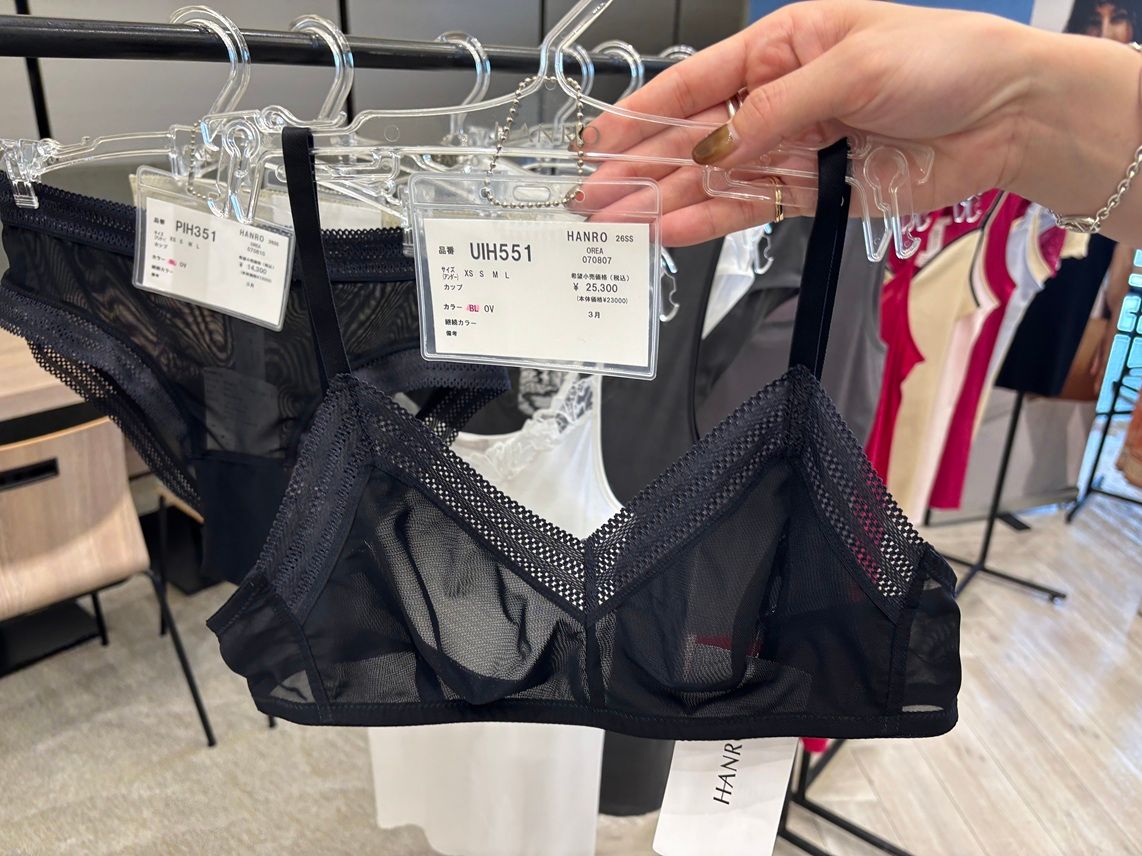 ブラジャーの新製品は、軽やかなセミシースルーが魅力。二重の裏地付きカップでバストトップが目立ちにくい