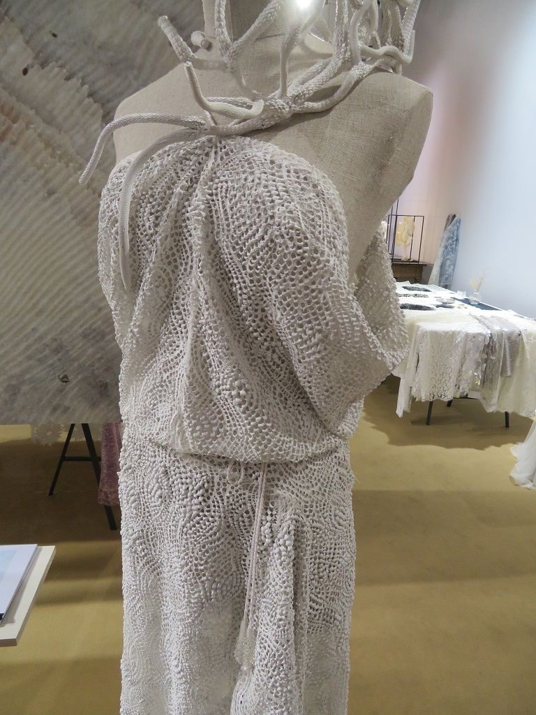今回のテーマは“ウエディングスピリット”。といってもここに展示されていたのはウエディングをテーマにしたランジェリーやランジェリー素材というのではなく、オートクチュールのブライダルの世界。様々な素材を使った現代のアーティストたちによる作品が集められ、そこからランジェリーの創作に多くのインスピレーションが投げかけられていた。