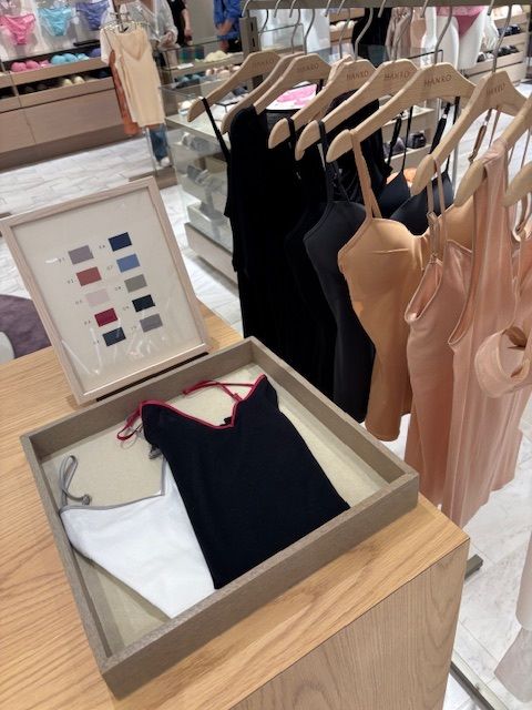 8月初頭に売場をのぞきに行ったが、かなりブランドを絞り込んだかたちで売場がコンパクトに縮小されていた。向かって右側はワコールの「ユエ」や「サルート」、トリンプの「フロラーレ」などの大手メーカーブランドが目につき、向かって左側部分は大幅に削られていた。「プリスティン」「ブラデリス」「リズ・シャルメル」といった強豪を背にしながら、その前面に売場を展開していたのがインポートブランドの「ハンロ(HANRO)」だ。