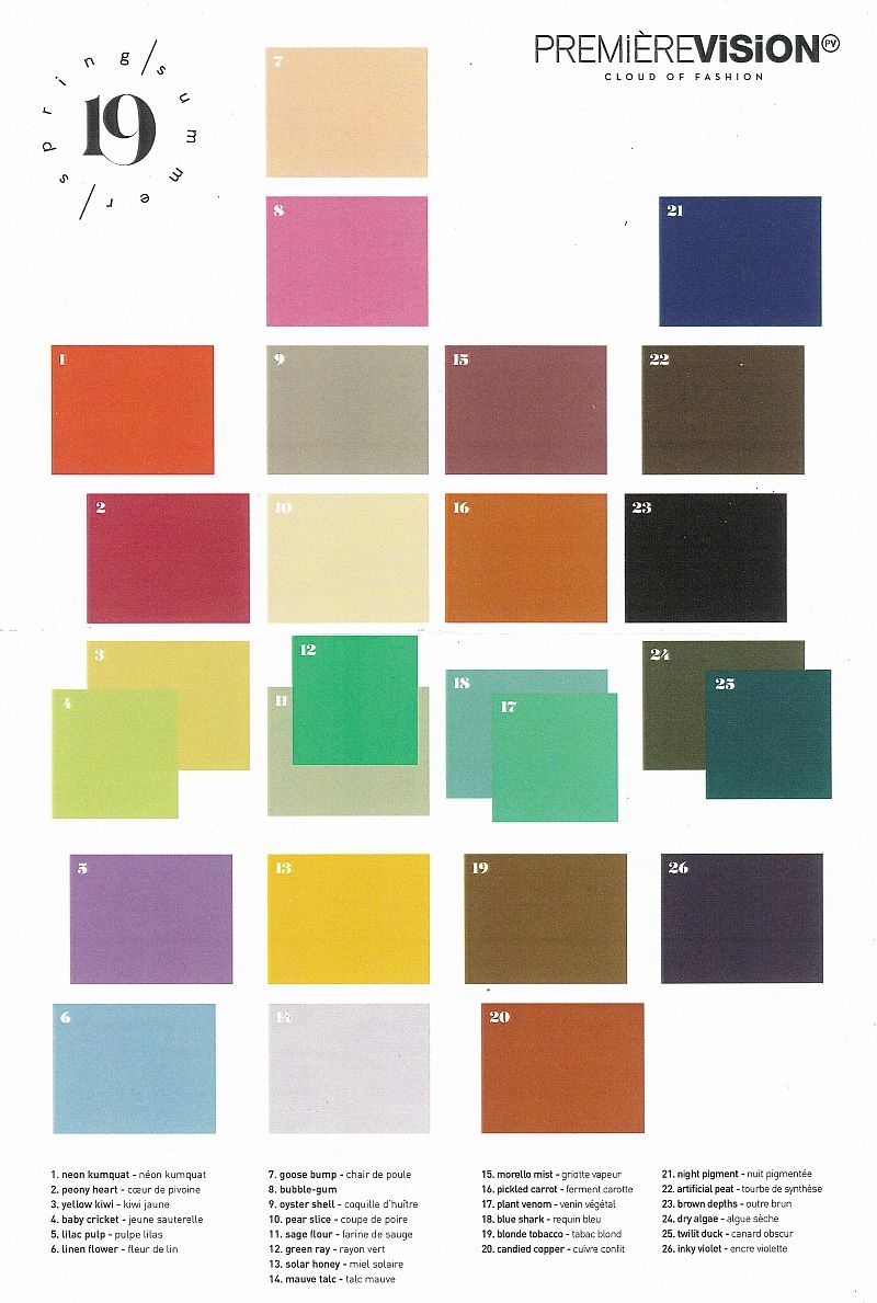 先月に先行してお伝えしたカラー一覧は今回の会場ではシンプルに四つのグループ26色で示されました。