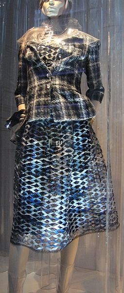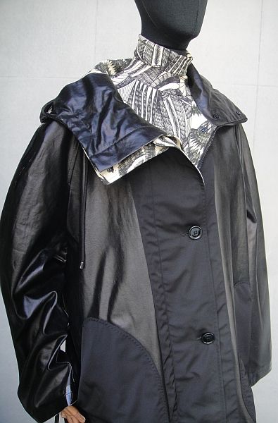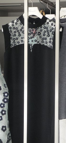 素材はニット、布帛を問わず透けるもの、フラットな合繊と天然素材との複合が主ですが、シルクジョーゼットや薄手のウール、キュプラ、トリアセなどの高級感のあるものが目立ちます。