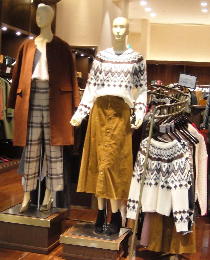優しくエレガントなナチュラル、豪華な刺繍、ゴブラン調、ポップなモチーフ、ダークなプリント、上質なベーシック、機能性をうたったカジュアルなど、様々なアイディアが感じられる東京の晩秋初冬の店頭です。