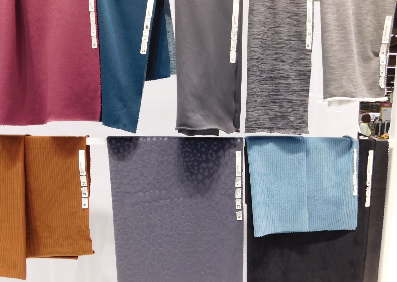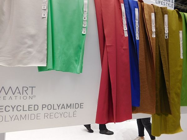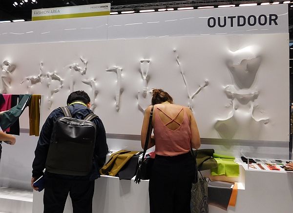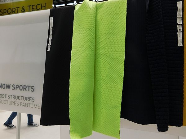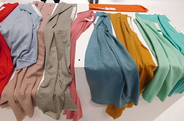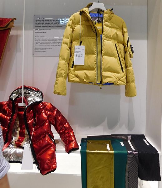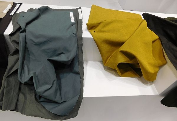 パワフルなニット(丸編み、経編)と織物で構成されている。さらにエコフレンドリーな素材に注目。