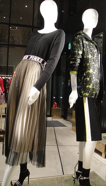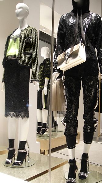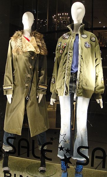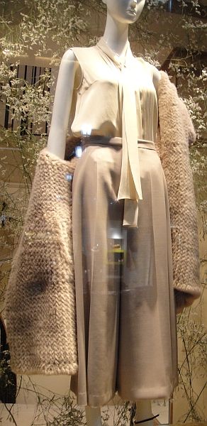厳しい寒さが続く1月ですが、ウィンドウの表情はそれに反抗するかのような明るく強い色目、オーナメントにも似た刺繍、人形やおもちゃをつけたような立体的な装飾があるかと思うと、シックな黒のセクシーなドレス、光るプリーツ、さらにクールな大人のエレガンスを象徴したようなプレーンな色使い、淡く上品なシャンパンベージュが際立つコーディネート等々、さまざまに分かれました。