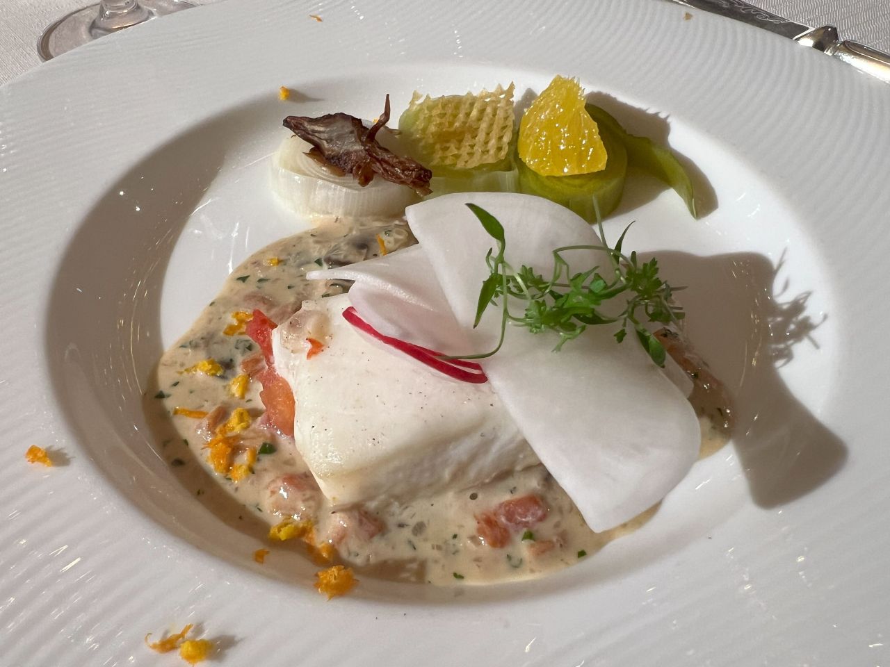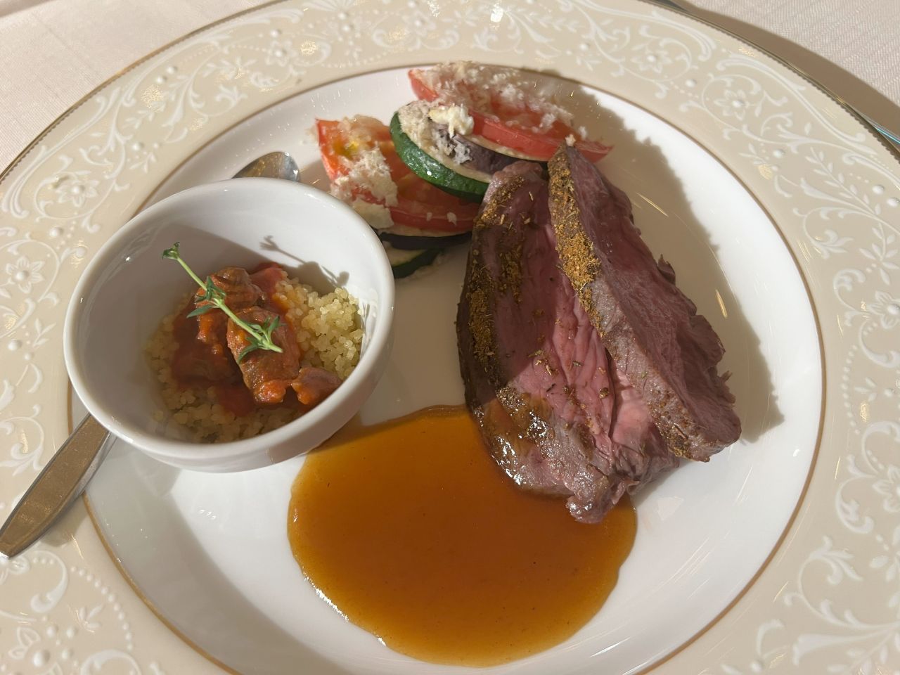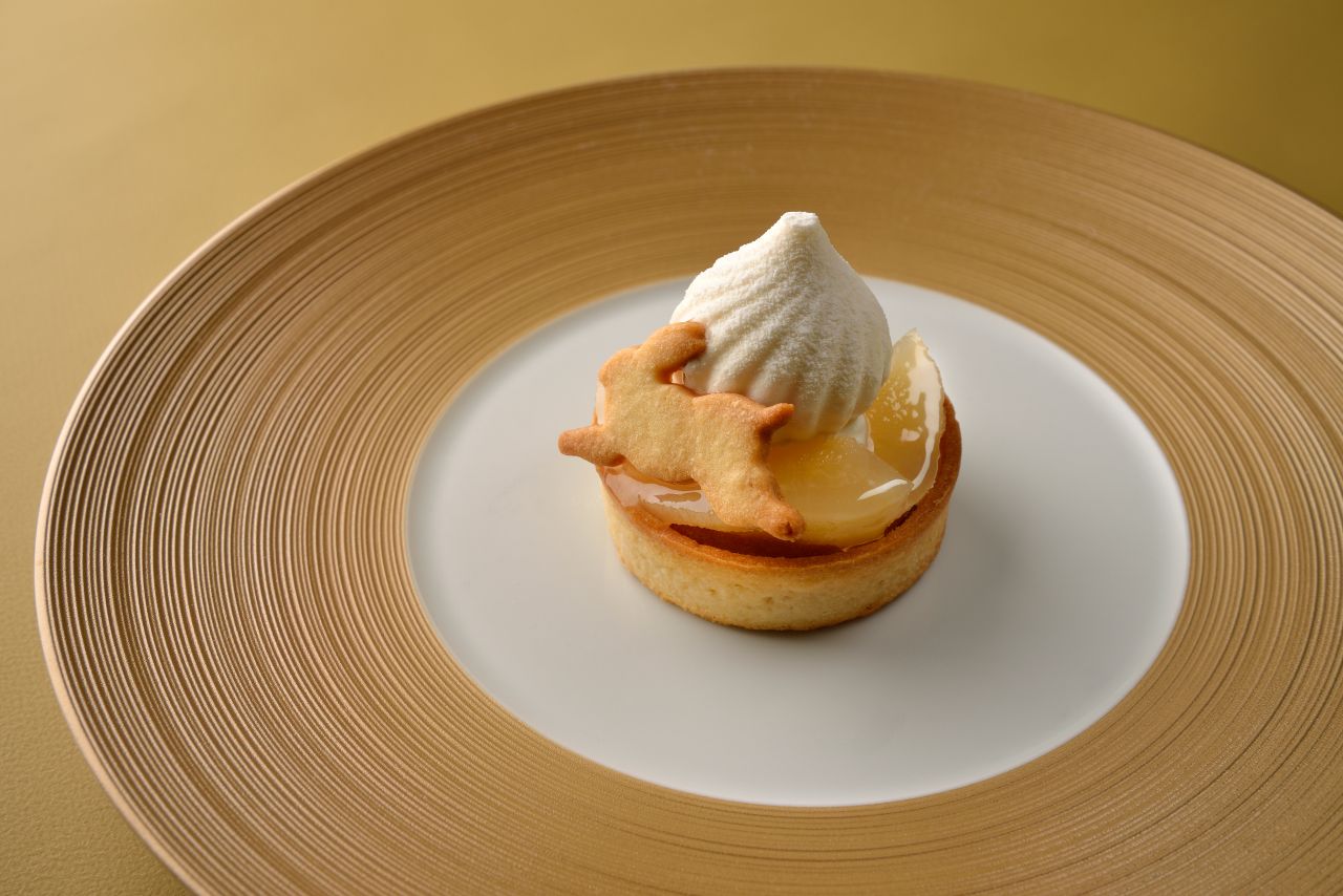 総料理長・十代雅之によるフレンチは、ラベンダーやヴァーベナ、金木犀など、南仏の草花を思わせる一皿一皿。羊肉のローストや真鯛のフィレといった本格的な料理に加え、香りをイメージした自家製パンも登場する。