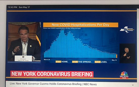 州知事の毎日のブリーフィングの報告では、図でも分かるようにようやくカーブを作る事(数字を減らす事)に成功してきたことが見ても分かる。